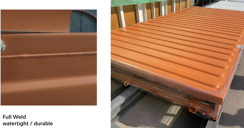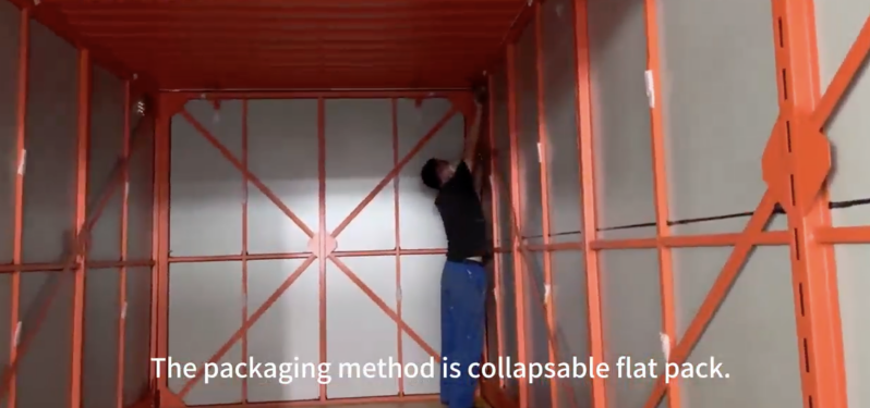 Container wordt als plat pakket aangeleverd .