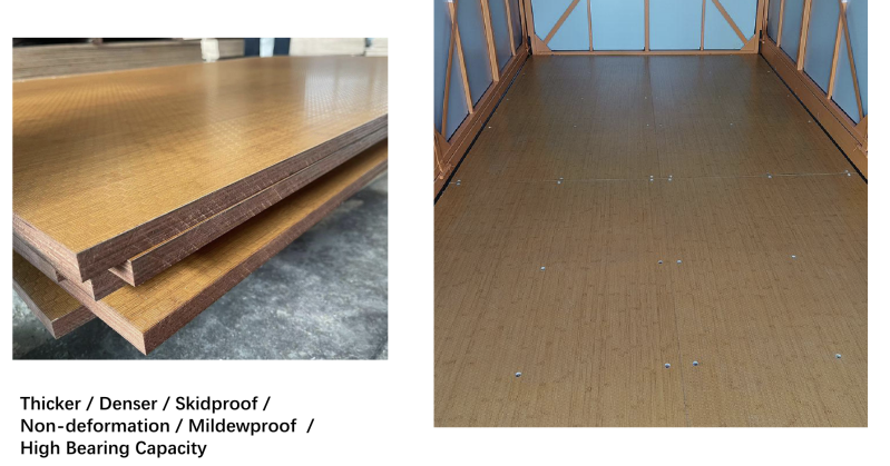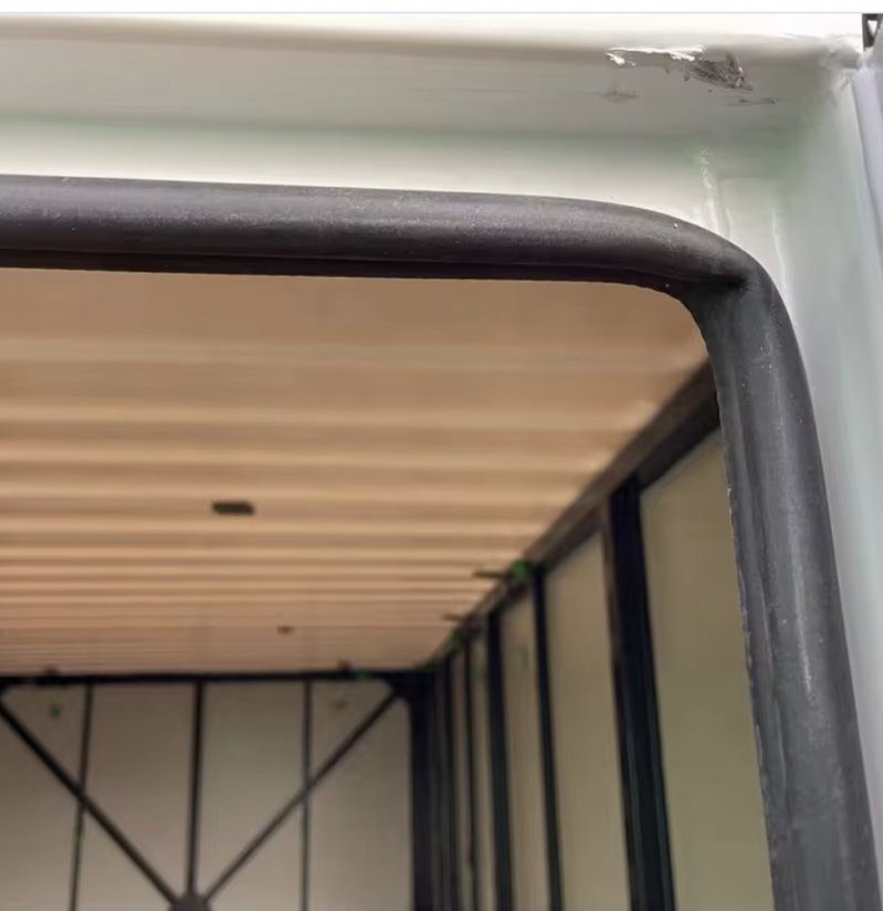 Gelast stalen onderstel , multiplex vloer , metalen frame - wanden - dak .